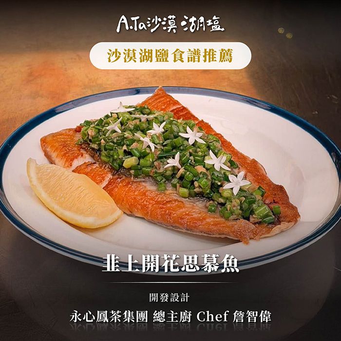 沙漠湖鹽讓虱目魚的油脂與鮮味更聚焦,也讓韭菜醬的辛香更立體,